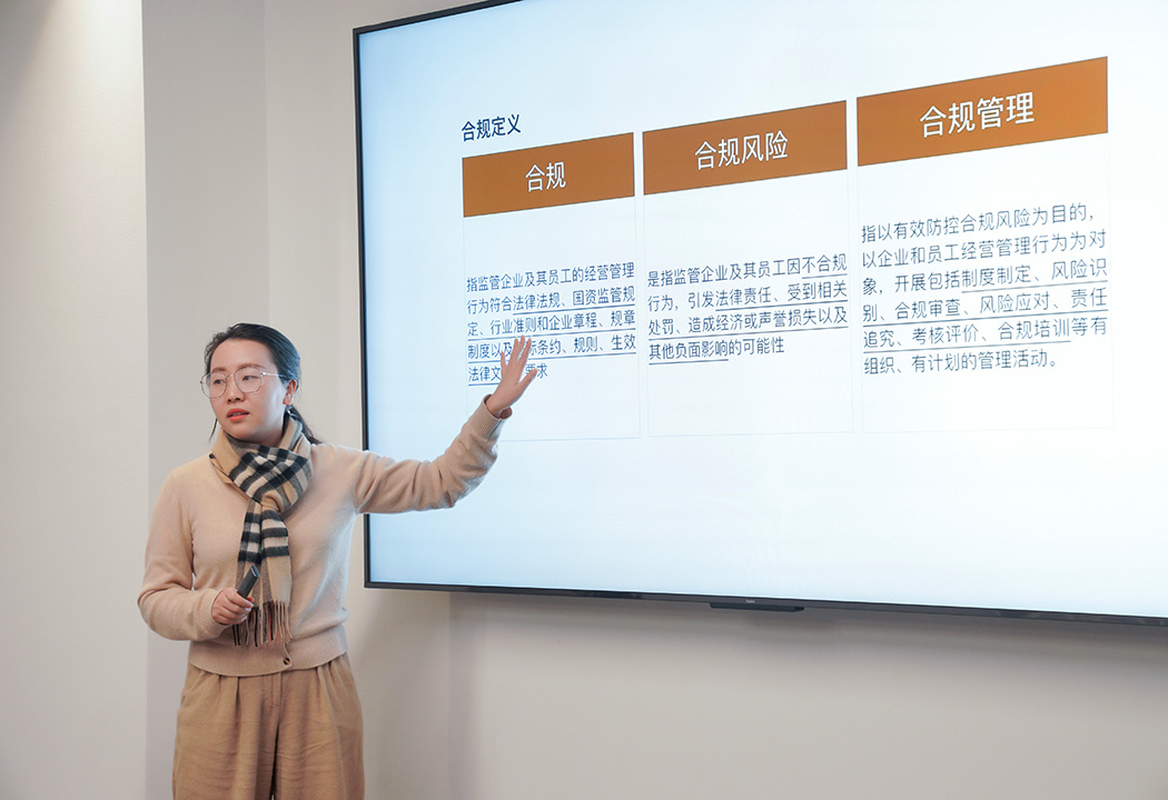 本期学习例会,由陈万莉律师带领大家从企业合规的国际和国内发展,私募基⾦的外部监管、监管环境变化和体系演变,私募基⾦管理⼈的四类责任分析,以及私募基⾦管理⼈合规管理职责、重点、运行、保障等维度展开学习。
